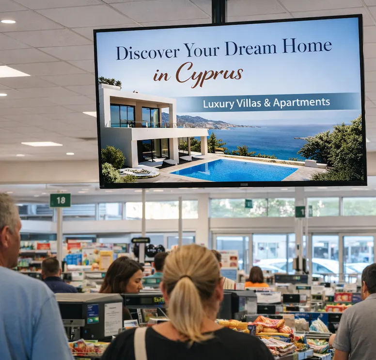 That’s why we’re building the most powerful real-world display network in Cyprus, giving local businesses exclusive exposure where real buyers move and decisions happen.